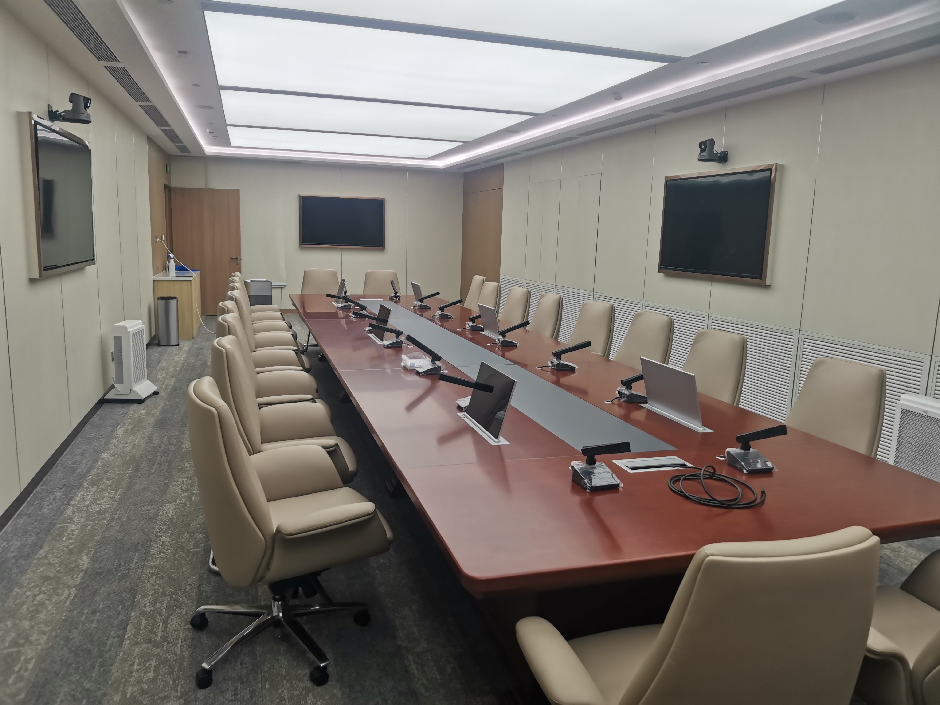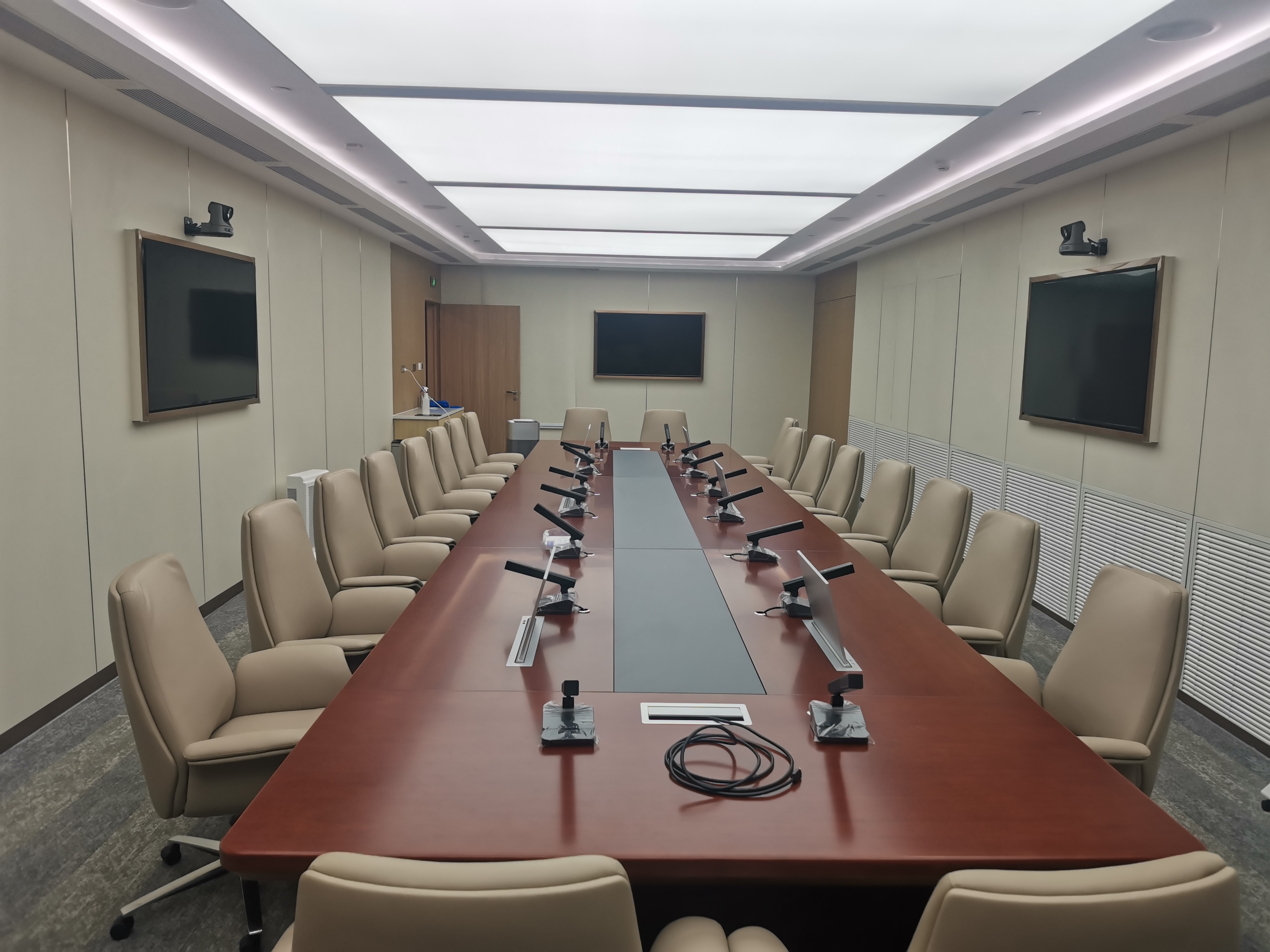 本次案例中,YMIOO麒麟系统为北京某大型企业会议室提供了一套完整、高端、智能化的无纸化会议解决方案。该系统通过 “一体化硬件设计”、“全流程无纸化交互” 与 “智能移动管控” 三大核心优势,实现了从会议材料流转、现场协作到设备环境控制的全场景革新,显著提升了会议效率与管理水平。