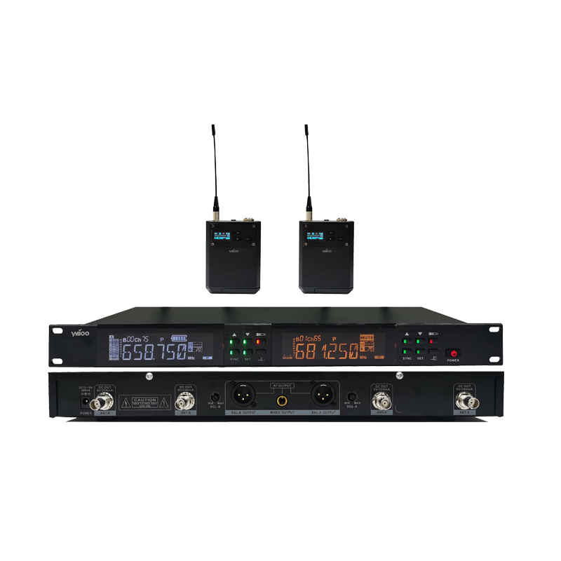 采用双通道真分集四天线接收无间转换系统;高效稳定的DPLL锁相环电路控制,操作简单,支持频率和信道数据、电池电量同步显示,同时在接收机上通过红外信号直接和手持发射器实现自动对频,并提供了每只话筒独立的编辑信道,红外自动对频方式和电池电量显示功能,RF通信距离远、可靠稳定,能检测环境RF信号干扰,大大提高了同场使用的数量和稳定性。